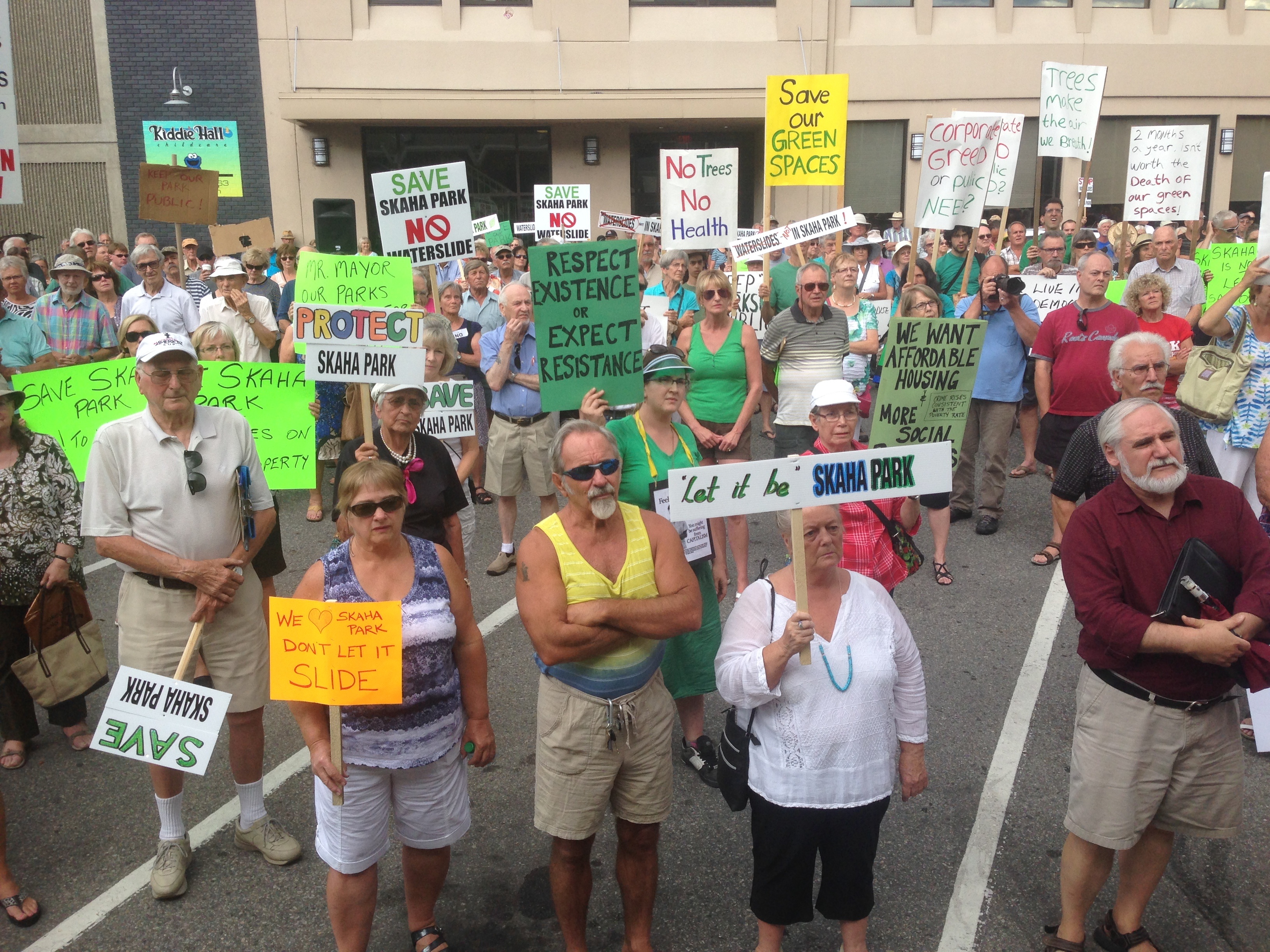 PENTICTON — Residents have been told it’s a done deal, but they refuse to give up. Hundreds rallied at the steps of Penticton city hall Tuesday against a marina and water slides development on Skaha Lake.