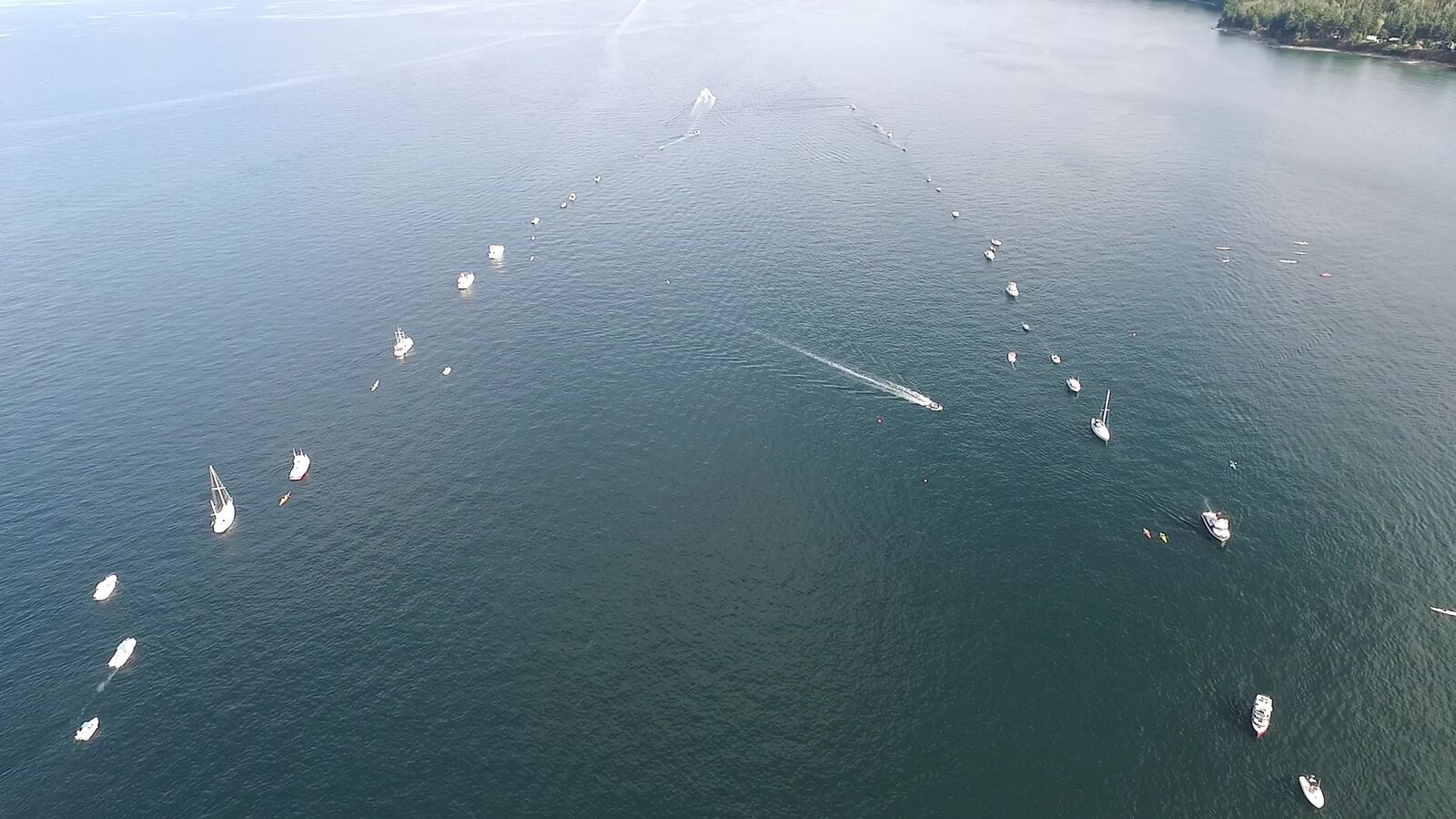 The boats lined up along the perimeter of one of the proposed freighters at one of the anchorage sites.