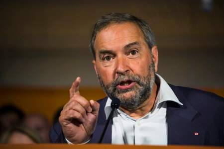 Tom Mulcair took aim at Stephen Harper’s economic record during a Thursday morning speech in Toronto ahead of the first leader’s debate.