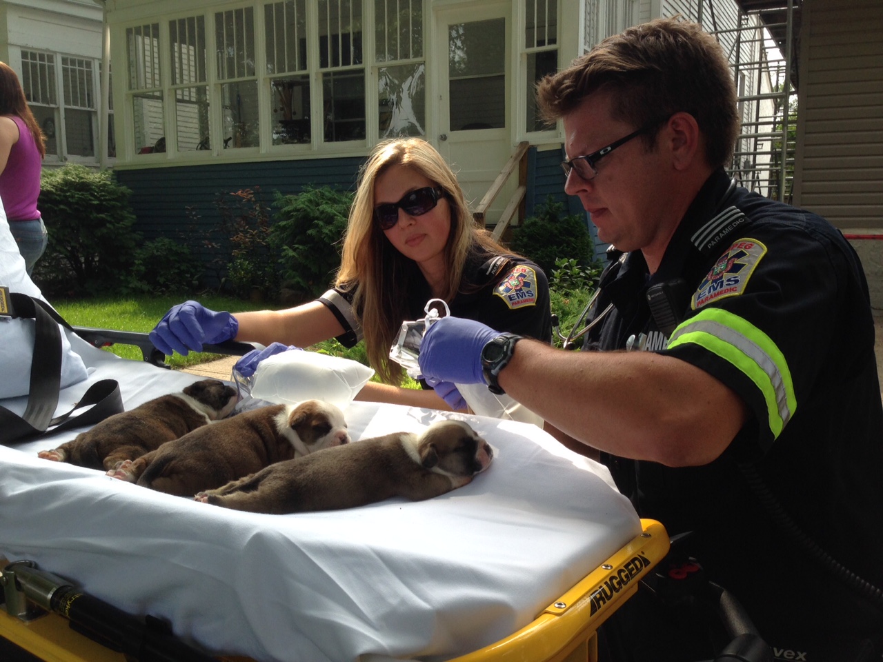“They were kind of limp at first,” said Alana Hielkema, one of the paramedics who worked on the dogs. “Over the course of 15 to 20 minutes they started to perk up and move their legs.”