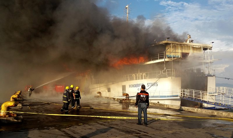 MANILA, Philippines – An inter-island ferry has caught fire in the central Philippines while it was docked and officials say all 544 passengers have been safely evacuated.