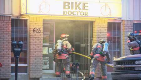 Upon arrival, fire crews found smoke at the Bike Doctor and flame coming from the rear of the building. Firefighters initiated an interior fire attack and had the blaze under control in 20 minutes.