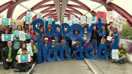 Calgary’s Peace Bridge and the Alberta Legislature grounds were were the sites of a rallies to support the Iranian nuclear deal.