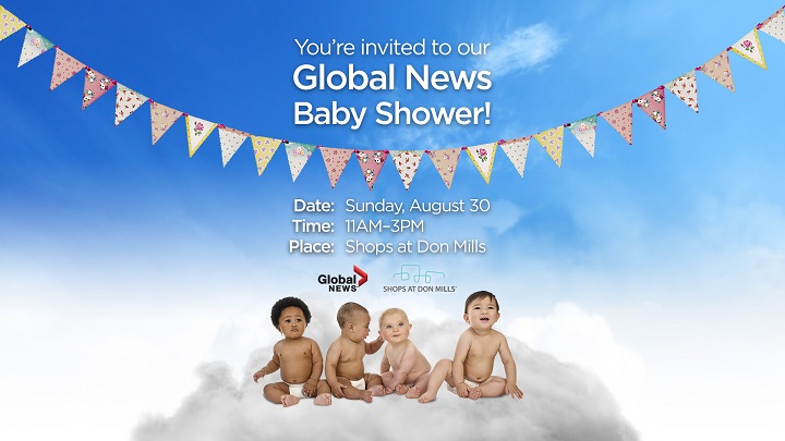 On Sunday August 30th, from 11am to 3pm, families and friends are invited to join Global News at Shops at Don Mills (1090 Don Mills Rd.) for an afternoon of free fun for parents and kids. From tips and tricks, to information on the best baby products, we’ll also have baby shower-themed games and entertainment for children.