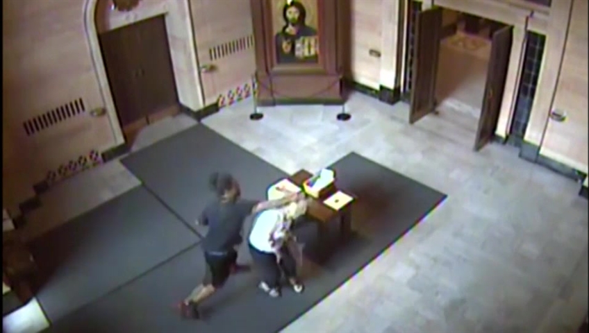 WATCH ABOVE: Security cameras inside the church captured the shocking assault on a 72-year-old woman.