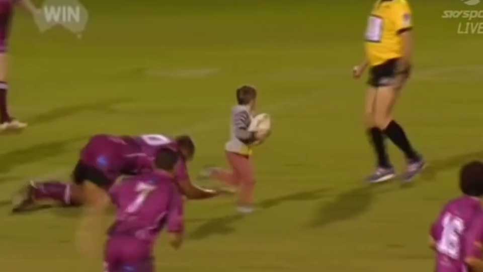 That’s the story out of Toowoomba, Australia, after a New South Wales and Queensland Legends charity exhibition – or ‘friendly’ – at the beginning of August went viral after it was interrupted by an apparently lost four-year-old boy standing in the in-goal area (end zone for you NFL or CFL fans).