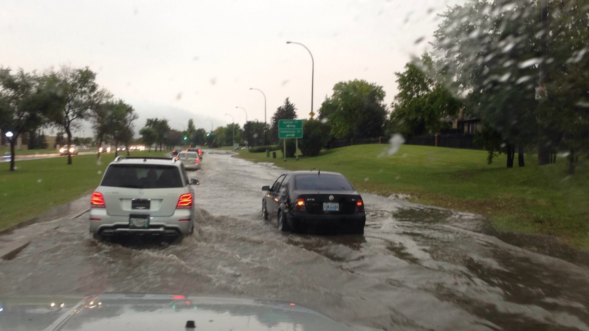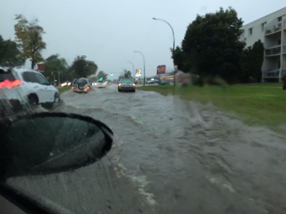 Global News viewers sent in photos from around the city showing flooded streets including Route 90 and Henderson Highway.