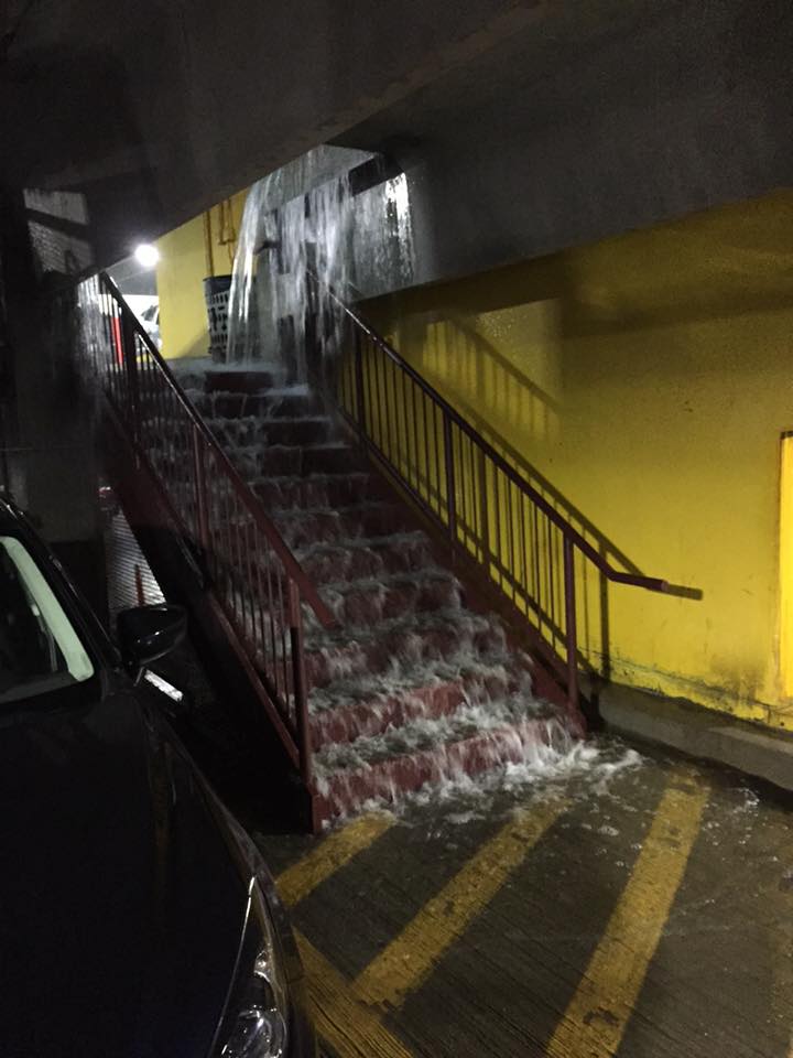 The rain began to pummel the streets around 11 a.m. and was so intense it lead to overland flooding.