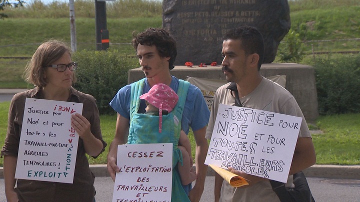 MONTREAL – Protesters on bikes and some in cars were part of a caravan heading from Montreal to St-Remi on Saturday, to show their support for Noé Arteaga Santos and demanding justice for all temporary farm workers in Quebec.