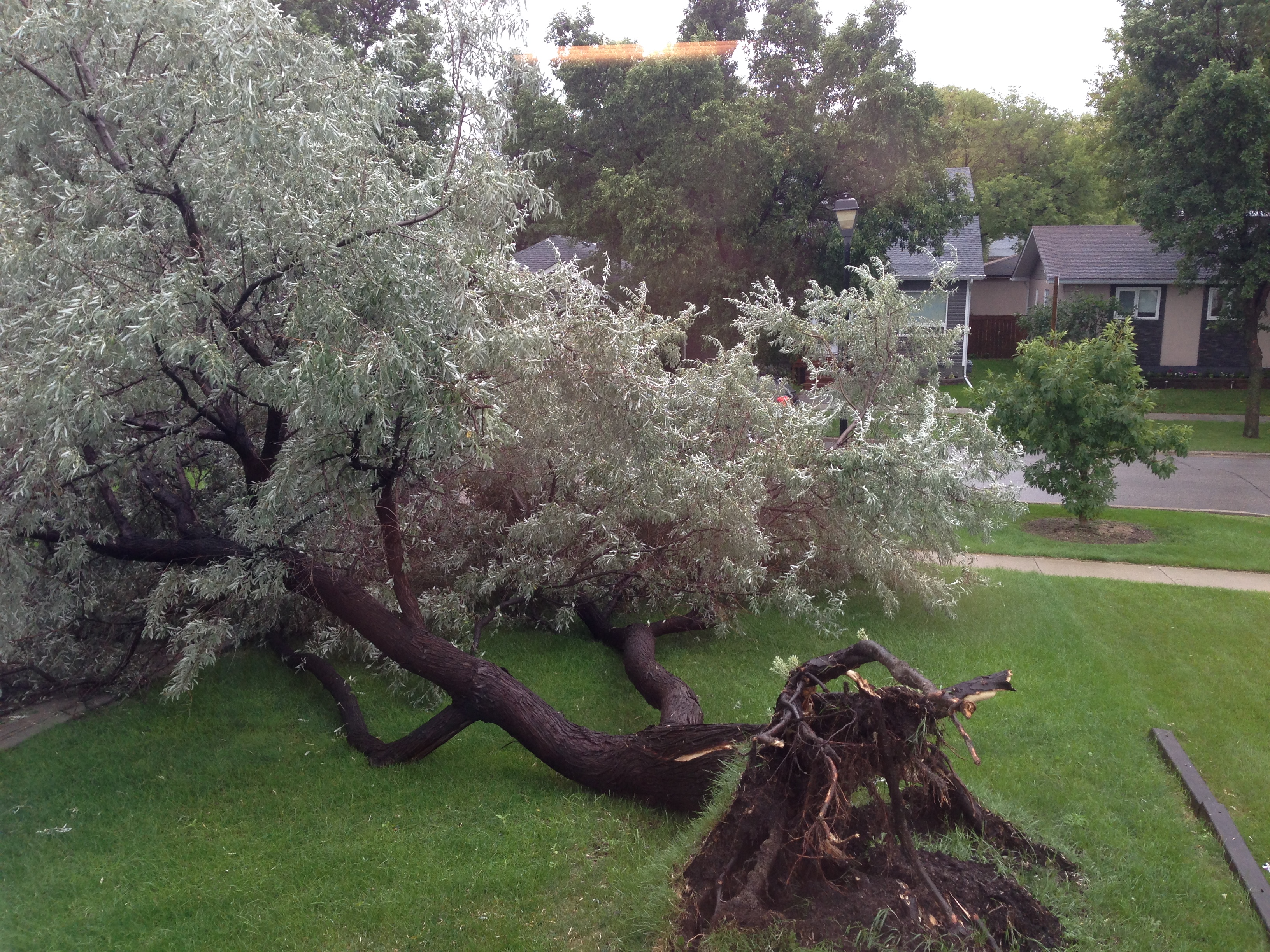 Trees were uprooted and streets turned in to lakes as more than 87 mm of rain fell in some areas on Winnipeg.