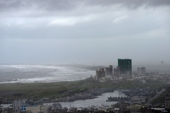 ABOVE: Typhoon Goni lashed the southern Japanese islands of Okinawa with heavy rains and winds on Monday.