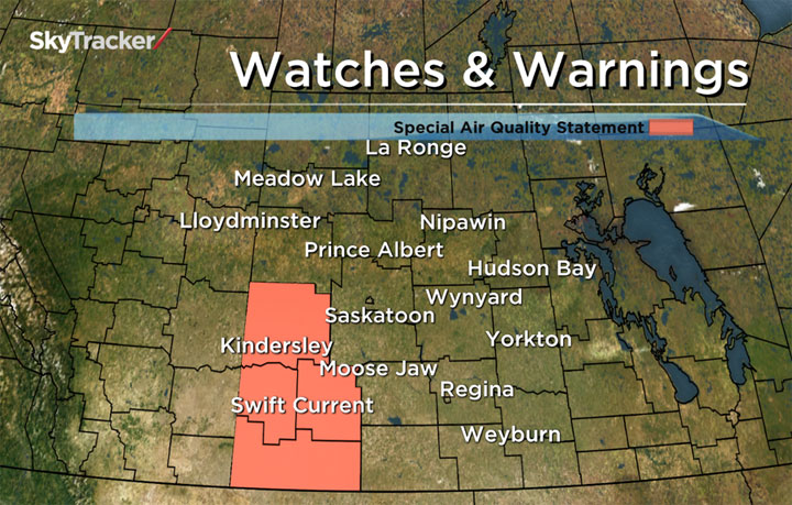 SASKATOON – Environment Canada has issued a special air quality statement for smoke over parts of southwestern and west-central Saskatchewan that could result in poor air quality Tuesday. The agency says forest fire smoke from the state of Washington will move into southwestern Saskatchewan Tuesday.