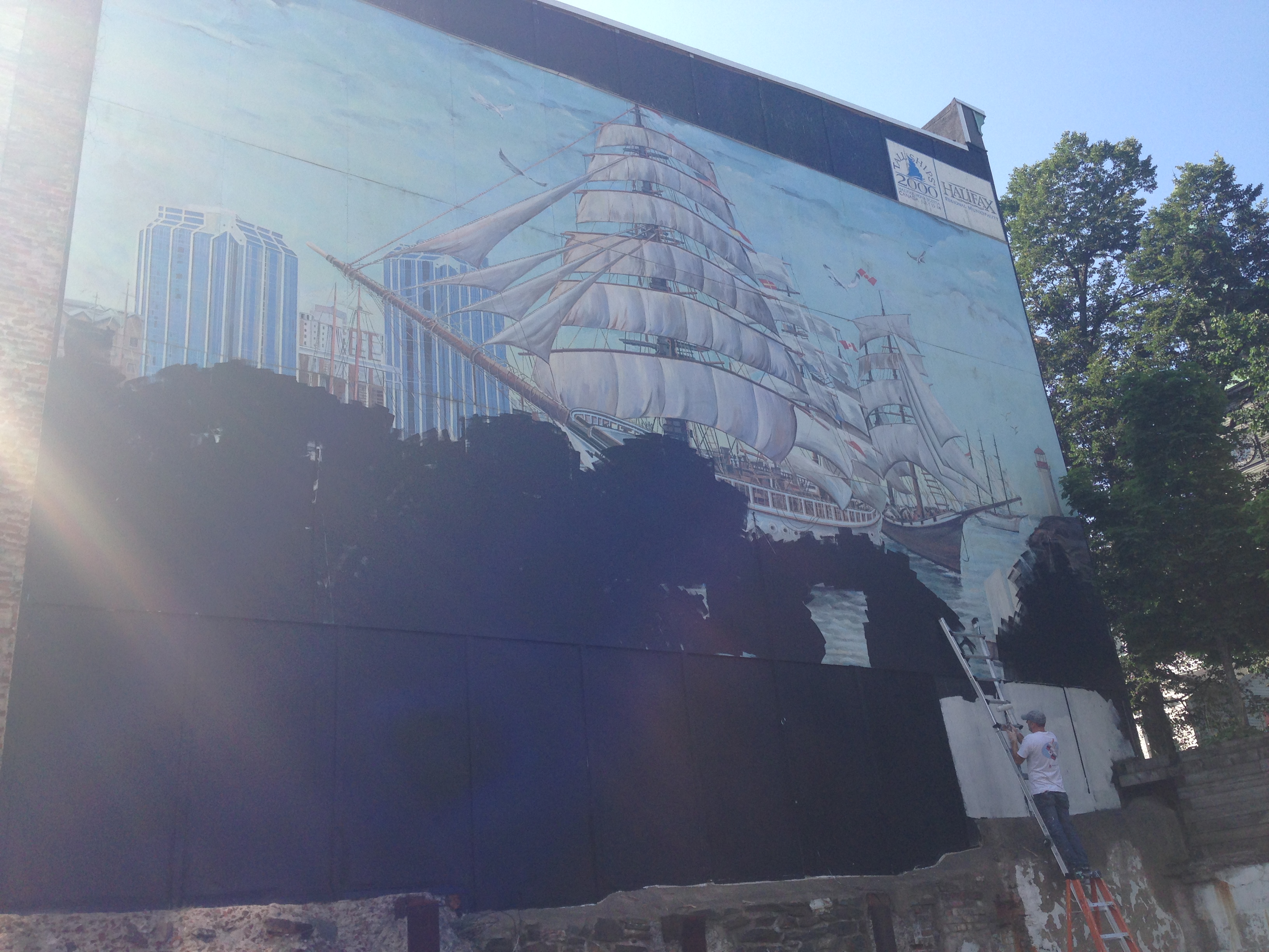 The “Tall Ships 2000” mural was painted 15 years ago by artist Zeqirja Rexhepi to commemorate tall ships visiting Halifax.