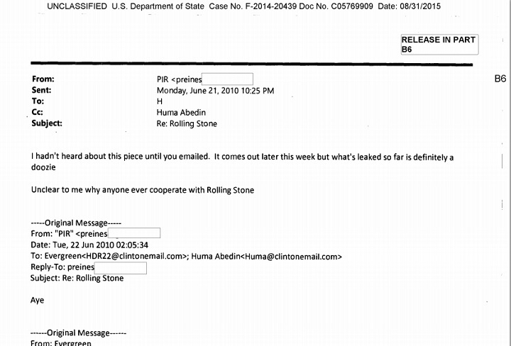Here are the emails between Clinton and her staff about the June 22, 2010 article.