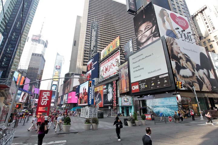 They also parked a mobile ad truck with the message outside the Apple Store on Fifth Avenue for good measure.