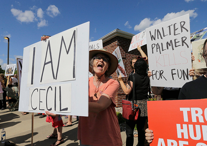 The small throng of protesters gathered outside the clinic didn’t match the furor in the days after Palmer was named as Cecil’s killer, when hundreds held vigils for the big cat with the black mane and forced River Bluff Dental to temporarily close.