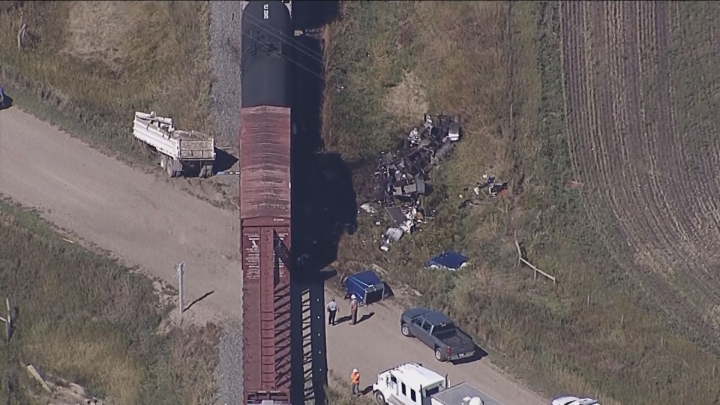 WATCH ABOVE: The aftermath of a truck-train crash near Vulcan, Alberta.