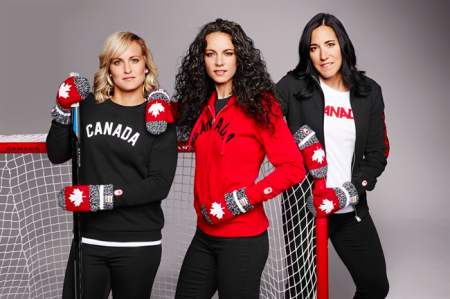 With eight Olympic gold medals between them, Canadian women’s hockey stars Caroline Ouellette, Shannon Szabados and Marie-Philip Poulin appreciate the support of the red mittens campaign.