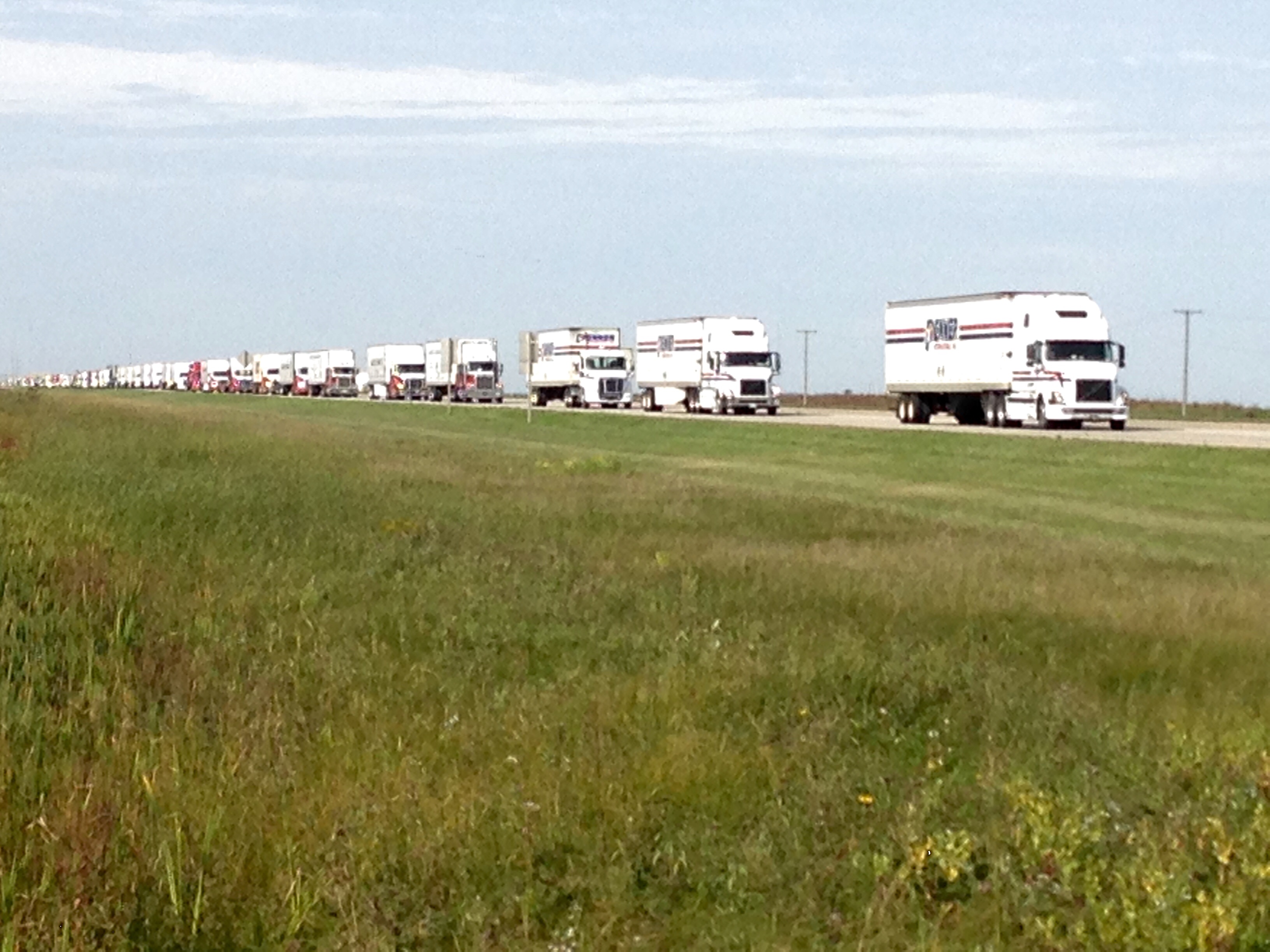 WINNIPEG – Honking was heard for miles as more than 200 trucks rolled down the Perimeter Highway in Winnipeg Saturday.