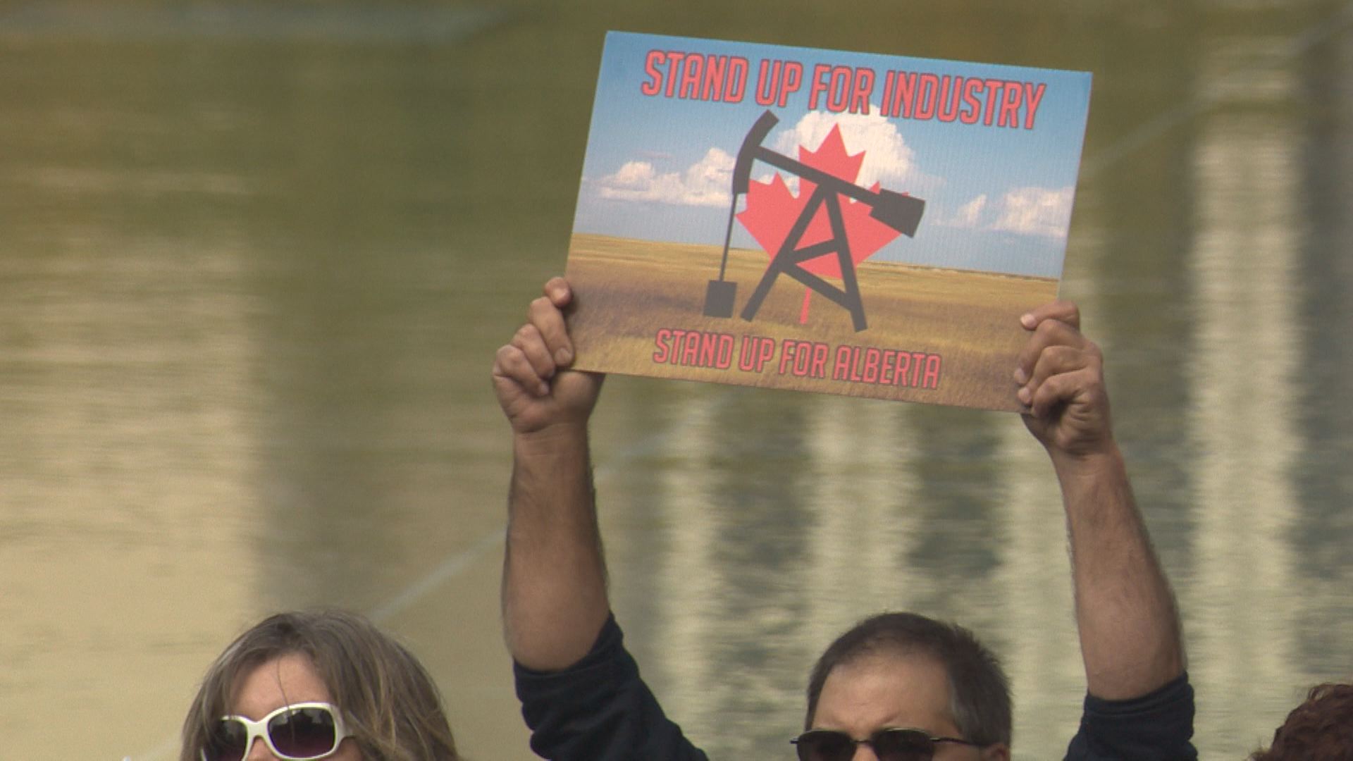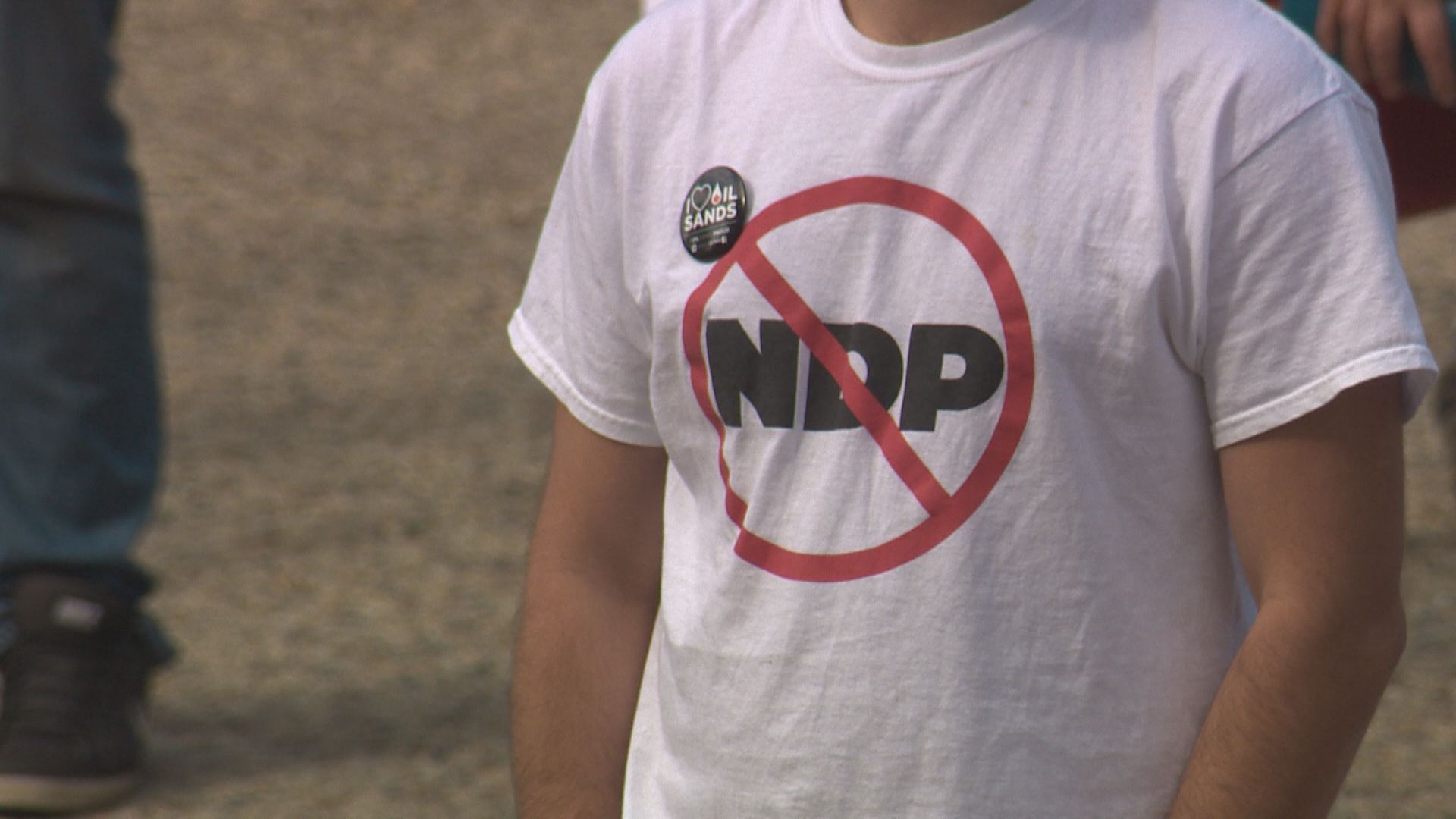 Many attendees at the rally wore anti-NDP buttons and carried signs questioning Notley’s leadership.