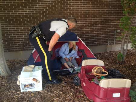 She was found in a tent near City Hall, with the matching running shoe, and the prosthetic limb was returned to her.