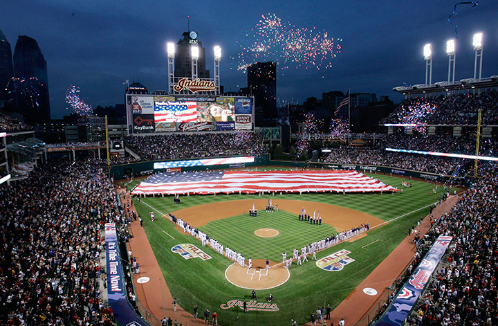Problem is — fireworks are usually launched over the field for homers hit by the home team Indians.