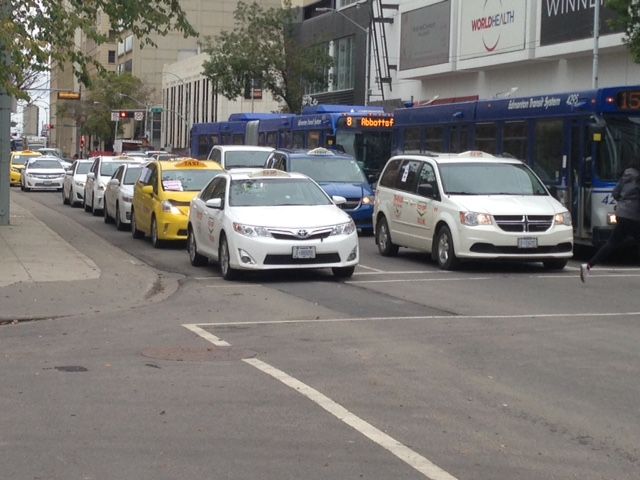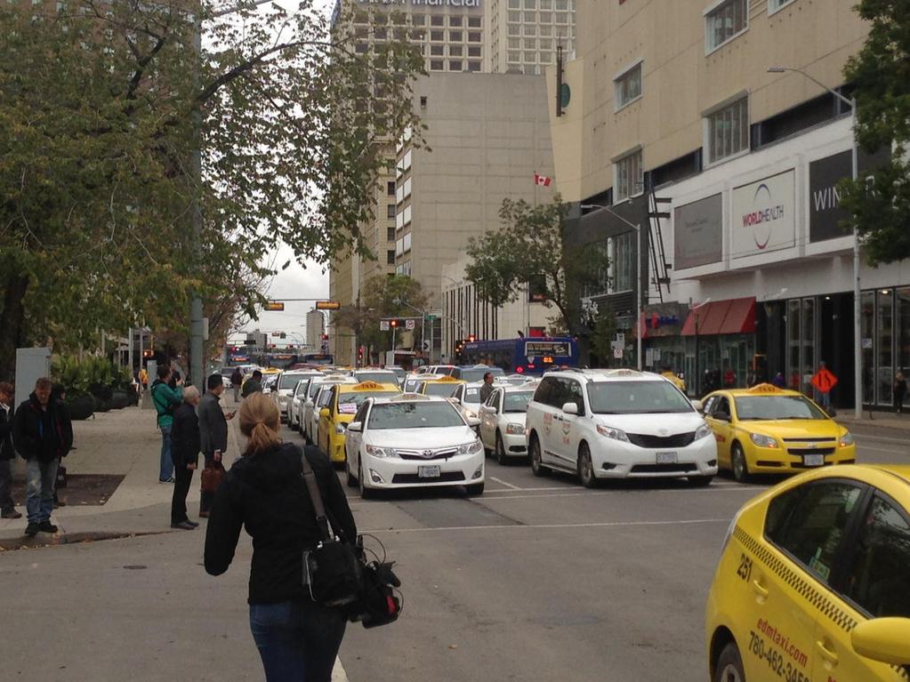 EDMONTON – Local taxi drivers held a rally outside Edmonton’s City Hall Wednesday, but so did supporters of Uber.