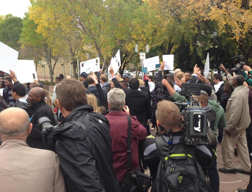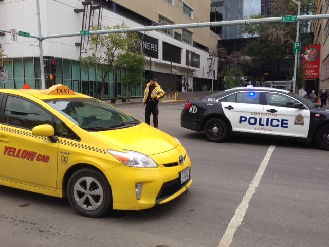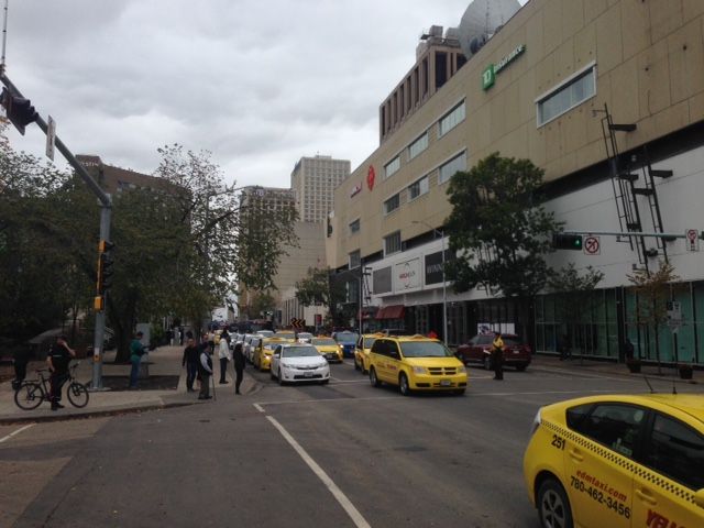 The rallies caused a large traffic jam on 100 Street and police were trying to keep things moving.