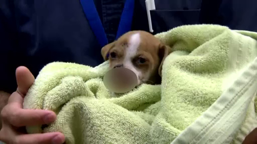 “He’s a very young puppy,” veterinary surgeon Richard Hurt told CBS 12. “He’s really timid and scared at this point. Obviously he’s been through a lot of trauma so he doesn’t trust anybody.”