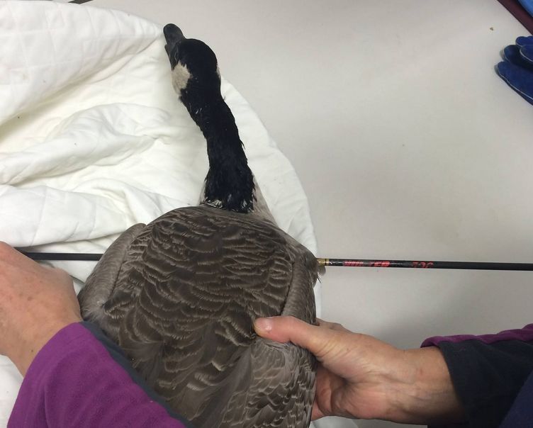 “The arrow went straight through, just below the neck of the goose,” the Facebook post reads.