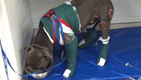 The dog sustained extensive injuries and is facing a long recovery.