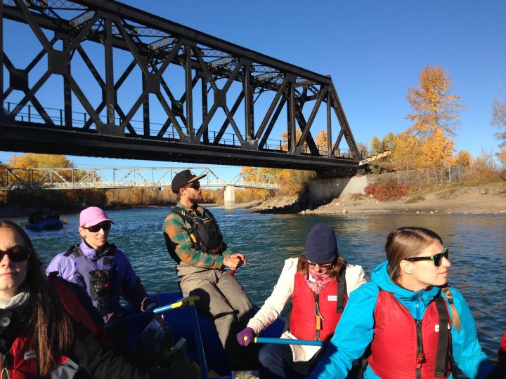 The group floated along at a flow rate of 80 cubic metres per second, a calm ride compared to 2013, when the river was still reeling from the Alberta floods.