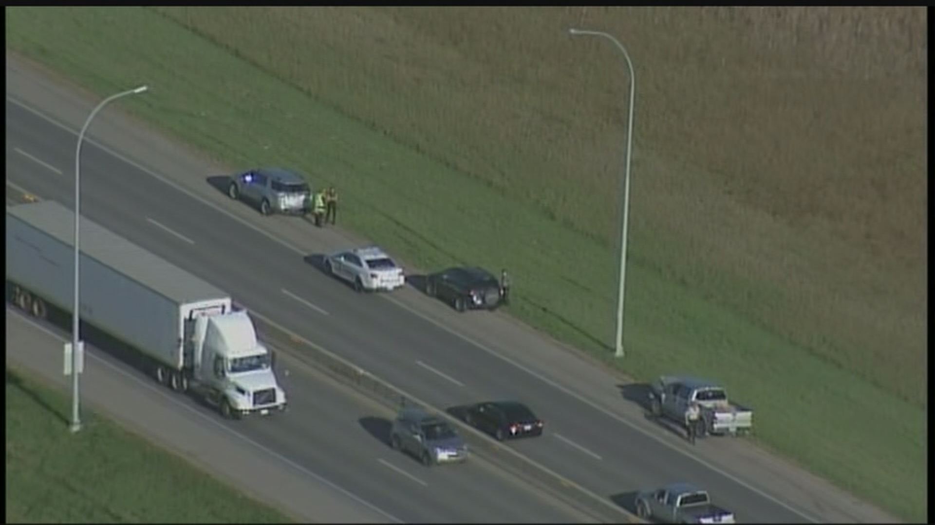 One lane of the roadway was closed down while crews cleaned up what appeared to be some sort of spill from one of the vehicles.
