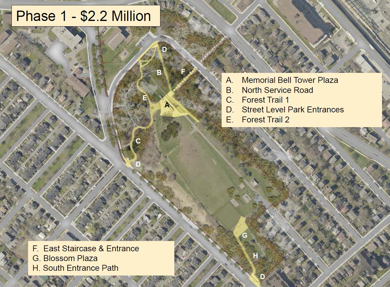 Other changes include moving the baseball diamond and football field to the east to accommodate for a new walkway on the west side of the park, re-grading different sections of the park so entrances are not as steep and creating more new garden and plaza spaces. The plans include a sensory playground, urban orchards and a community garden area.
