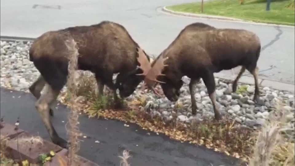 The Anchorage native has the distinction of recording a rare sight for any residential neighbourhood — a pair of bull moose locking antlers in the middle of the street.