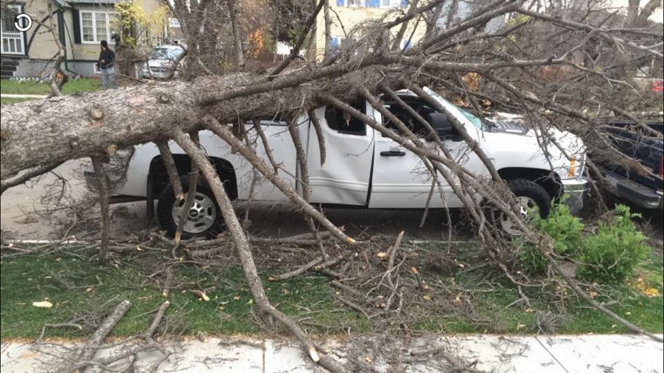 Conditions are expected to improve throughout the day as the system moves into Saskatchewan, but several people took to social media Sunday to share the damage caused by the wicked weather.
