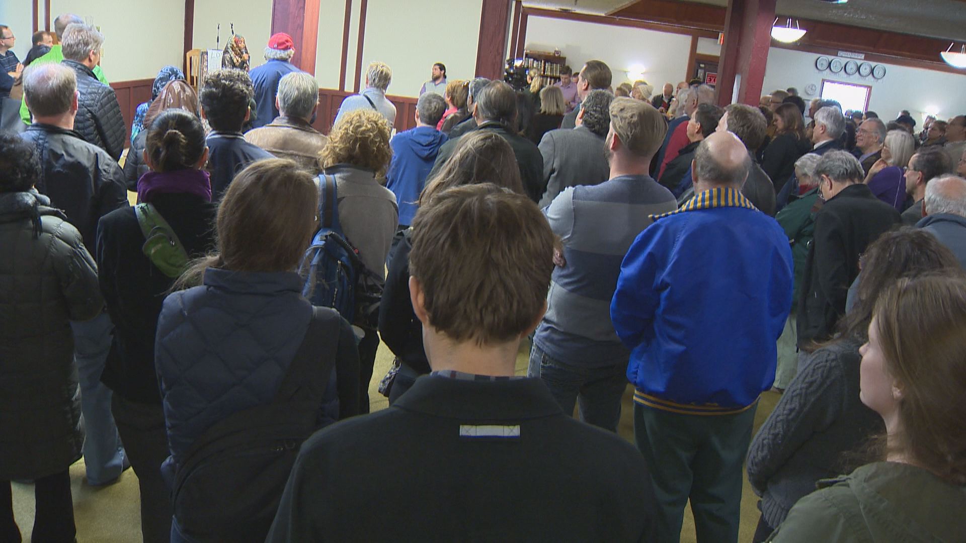 A crowd of around 200 people spilled in to the Central Mosque on Ellice Avenue for the “My Canada Includes Muslims” rally.
