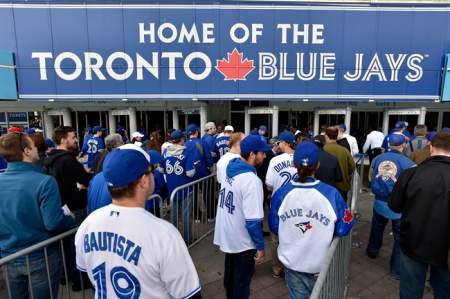 WATCH: Toronto City Hall is crowded with Blue Jays fans as they cheer on the city’s team in Game 5 against the Texas Rangers.