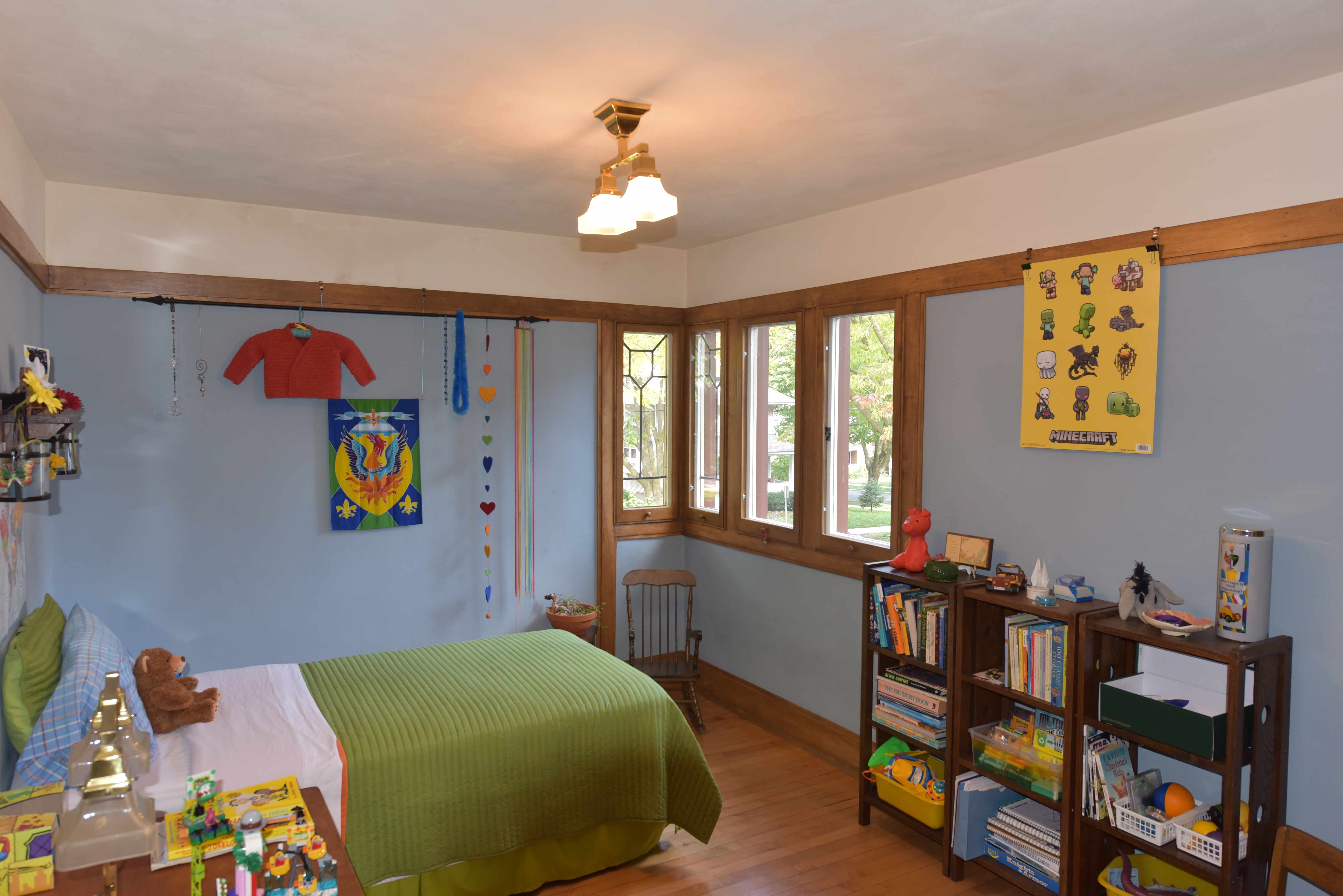 Framing studs in the basement were 24 inches on center, a known Wright deviation from the typical 16-inch span. The window pattern is custom designed, along with the latches.