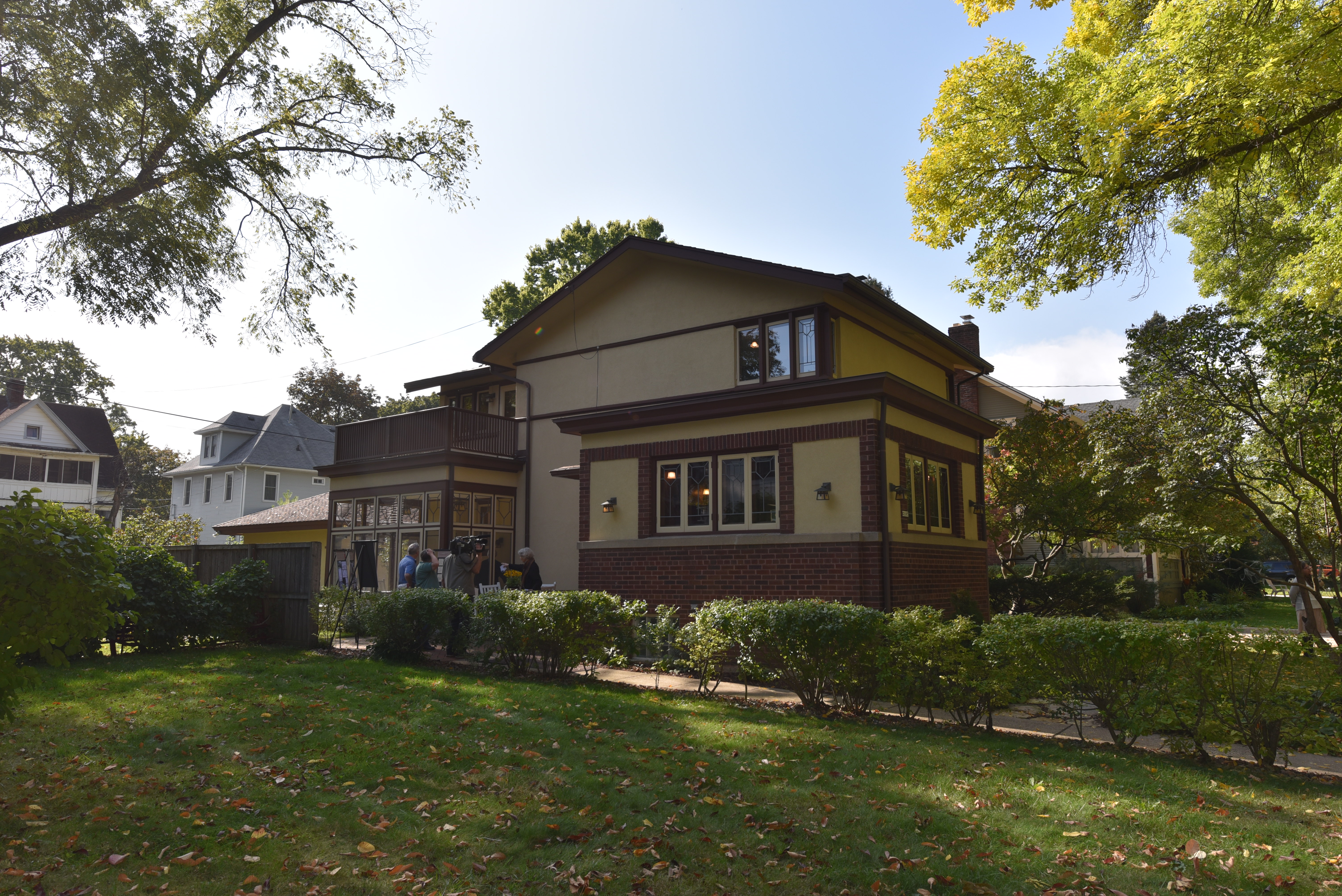 There was no reference to it in any of the catalogs of known Wright homes, and it had some distinctly uncharacteristic elements, like a band of dark red brick around the stucco exterior. There were no known drawings of the home linking it to the first owner, and no photos had been found showing the house as it looked when it was first built.