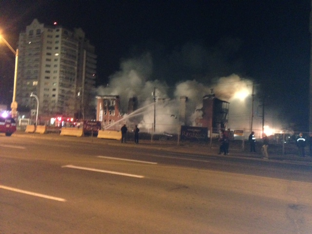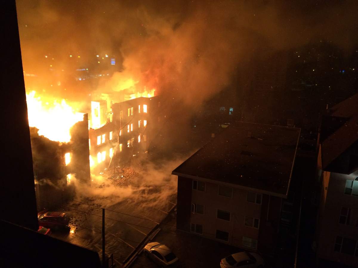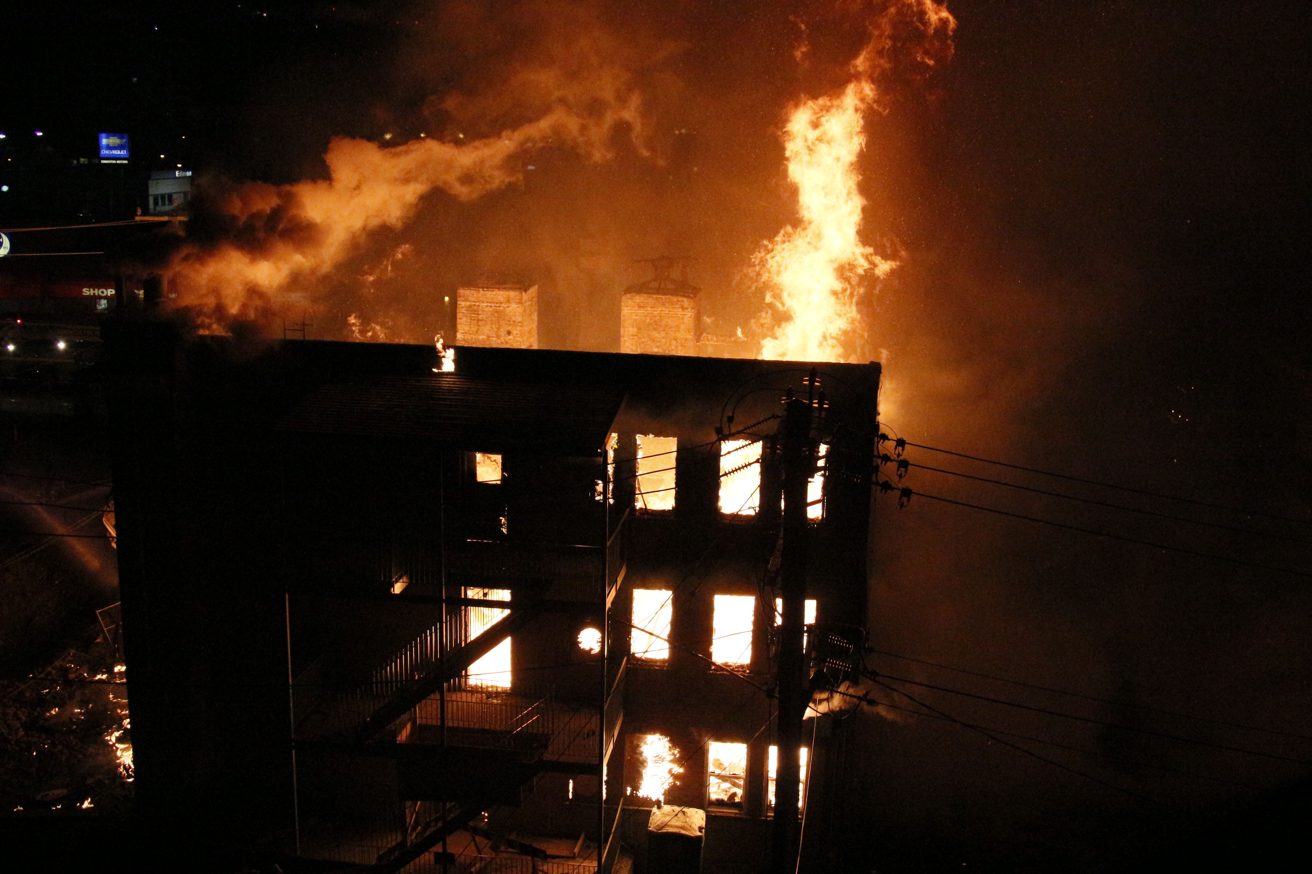 Around 4 a.m., crews were called to the building at Jasper Avenue and 114 Street. Flames could be seen engulfing the old building, which was unoccupied at the time.