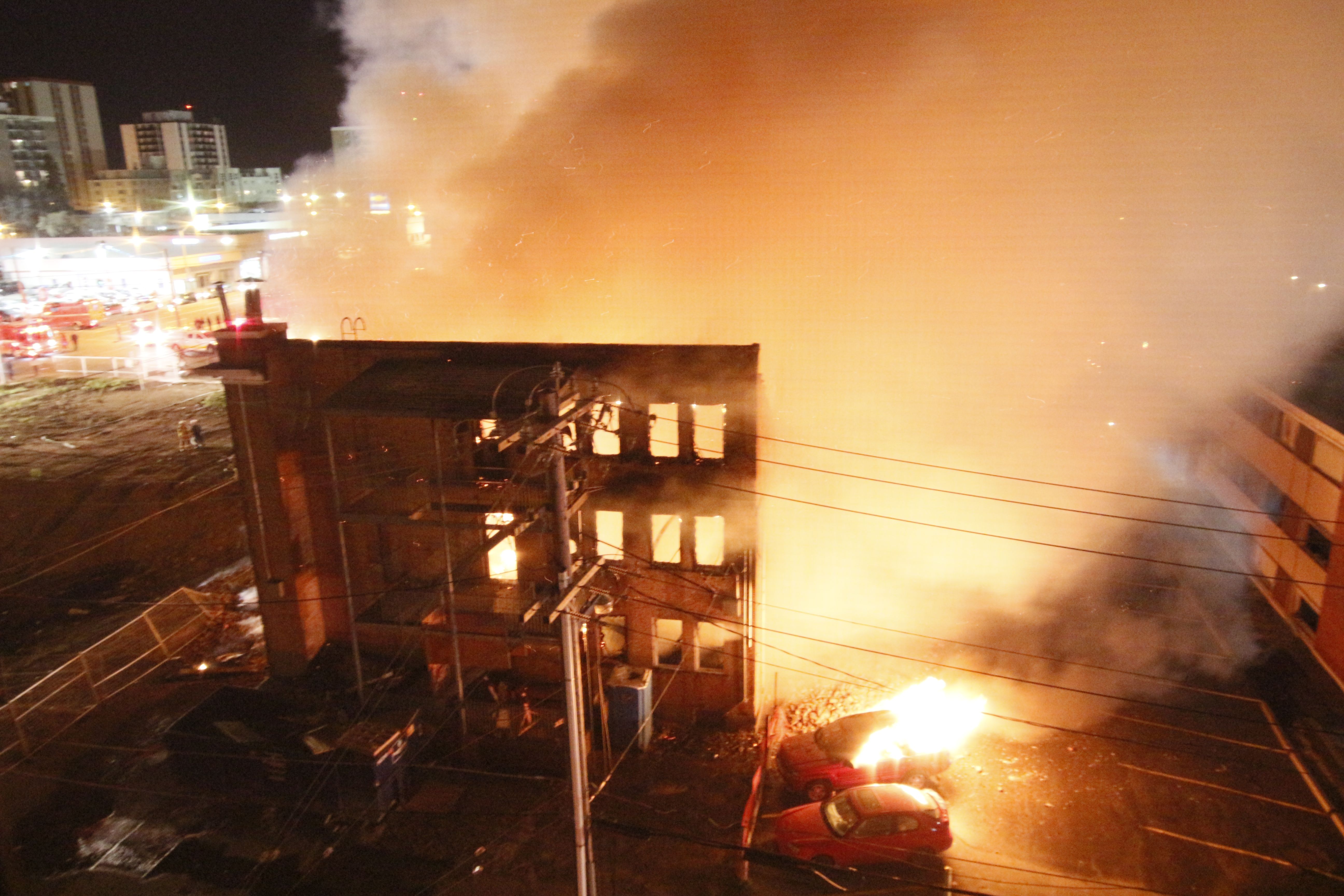“We were worried about walls falling on power lines and our fire fighters, so we had to adapt to an exterior attack,” explained deputy fire chief Barry Lamb.