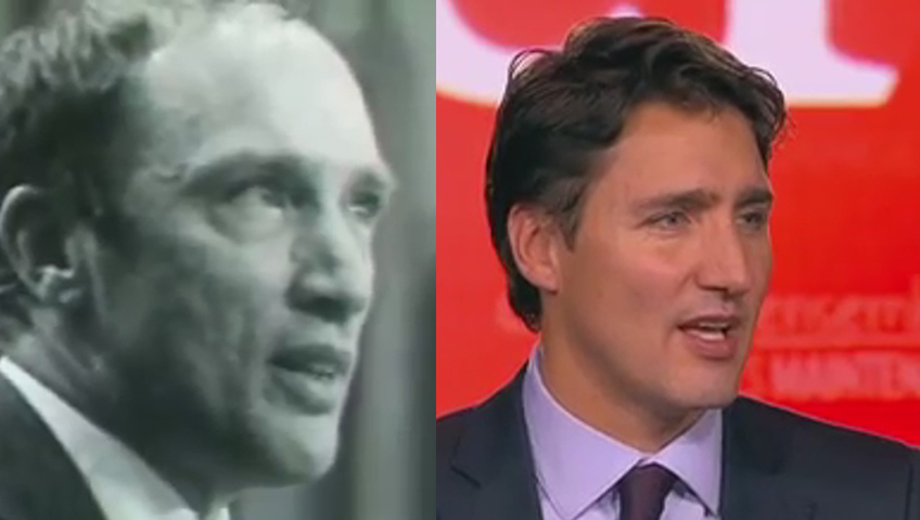 In an archival video of Pierre Trudeau’s speech to the Liberal convention after winning the party leadership in 1968, the senior Trudeau spoke on themes that Justin evoked on Monday.