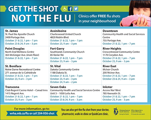 Twelve public clinics are offering the free shots until October 24 to Manitobans over 6 months old.