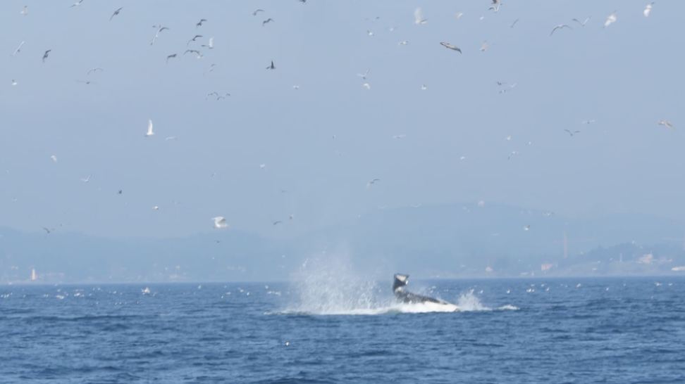 Mike Walker of Roll.Focus. Productions filmed a male transient orca flinging a harbour seal several metres into the air. This is a typical way orcas kill seals before eating them.