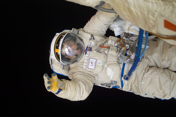 Kelly and Kjell Lindgren floated out of the International Space Station for a bit of maintenance work. Their to-do list included greasing the station’s big robot arm, routing cables, removing insulation from an electronic switching unit and covering an antimatter and dark matter detector.