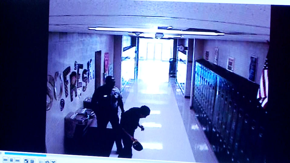 The school surveillance video that has been released shows the altercation between Jaha and the unidentified student but not the exact moments the school officer admitted to the assault.