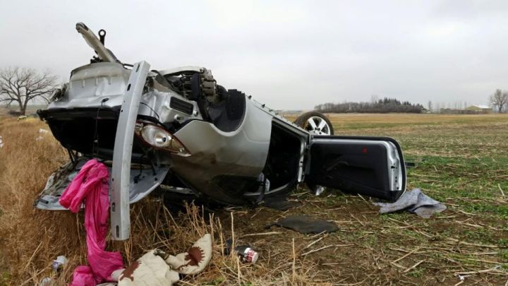 It happened on Highway 23 between Monarch and Nobleford just before 11:00 a.m. One of the vehicles involved rolled into the ditch.