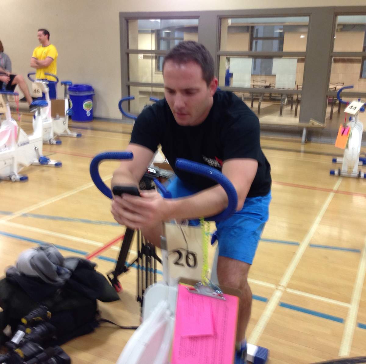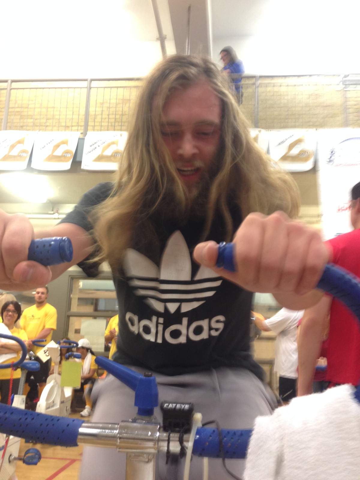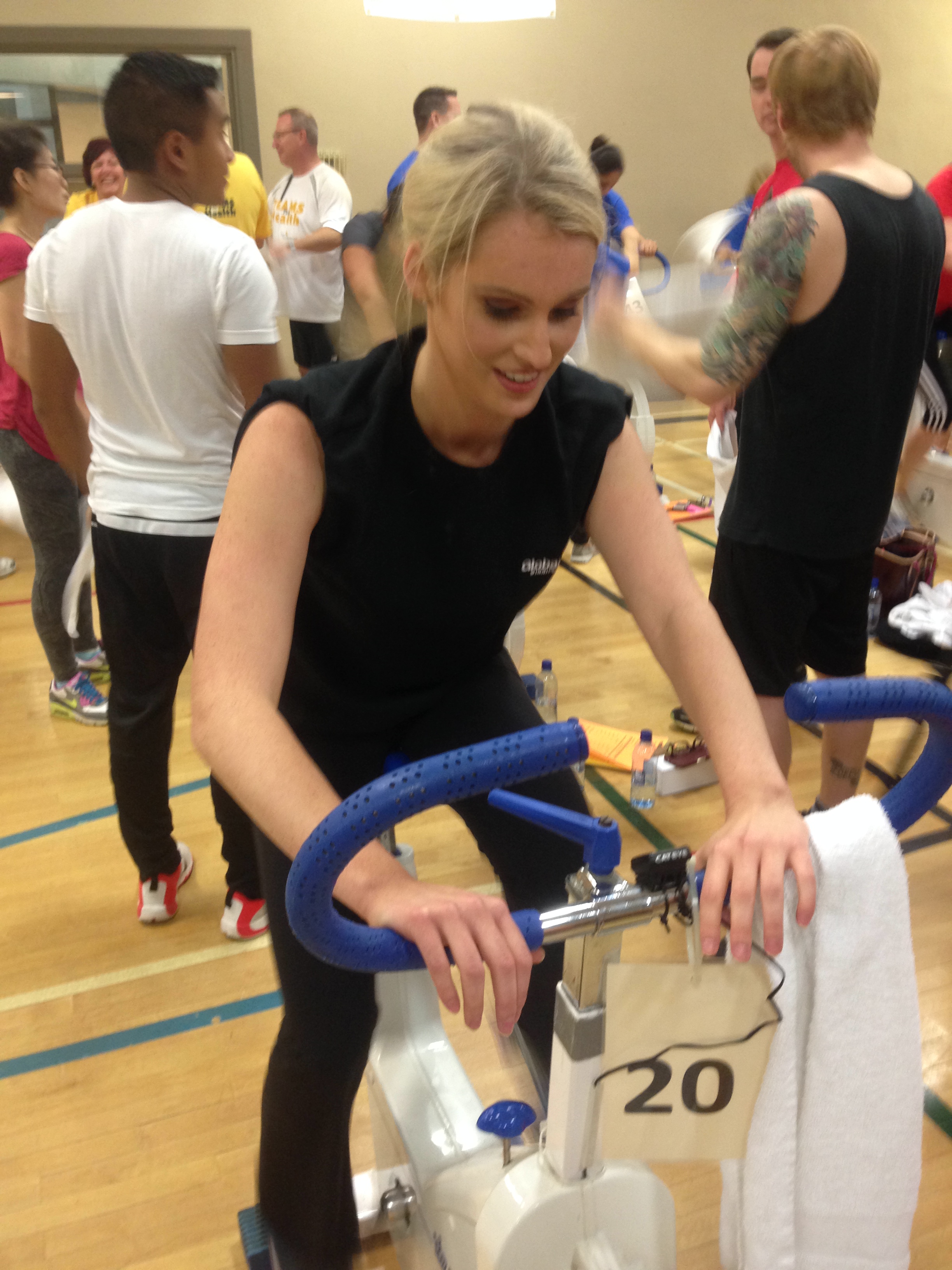 The stationary bike-a-thon at the downtown Winnipeg YMCA had 82 teams compete, a total of more than 500 riders each peddling for 8 minutes.