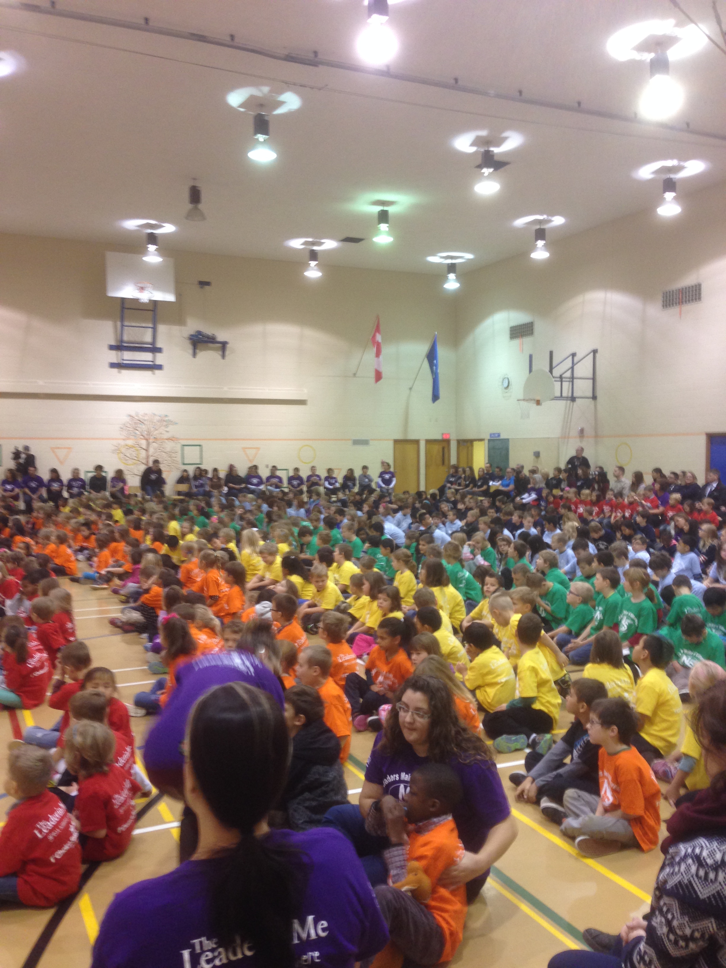 Hundreds of energetic and happy students gathered Wednesday at Nicholas Sheran Community school to help kick off the annual Angel Tree for Kids campaign put on by Lethbridge Family Services.